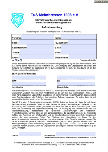 Im Bereich Service findet Ihr unsere Vereinssatzung, die Beitragsordnung, die Ehrenordnung, sowie unser Anmeldeformular, wenn Ihr dem TuS beitreten möchtet.